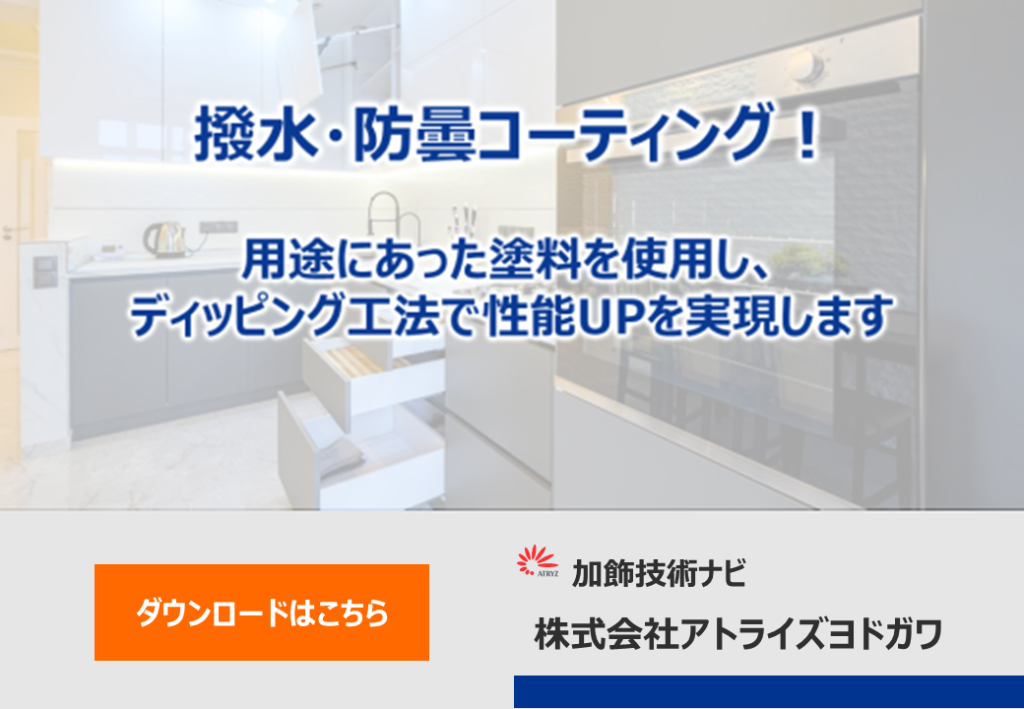 撥水 防曇コーティング!用途にあった塗料を使用し、ディッピング工法で性能UPを実現します 撥水・防曇コーティングで実現出来ることを 1冊にまとめた技術資料をアトライズヨドガワにて、制作しました! 是非、ダウンロードして下さい! 資料名(必須) お名前(必須) フリガナ メールアドレス(必須) TEL(必須) 会社名等(必須) 部署名 「個人情報の取り扱い」に同意する